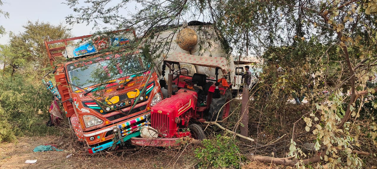 ट्रक और भूसा से लदे ट्रैक्टर ट्रॉली में टक्कर, चपेट में आए बाइक सवार महिला-पुरुष की मौत